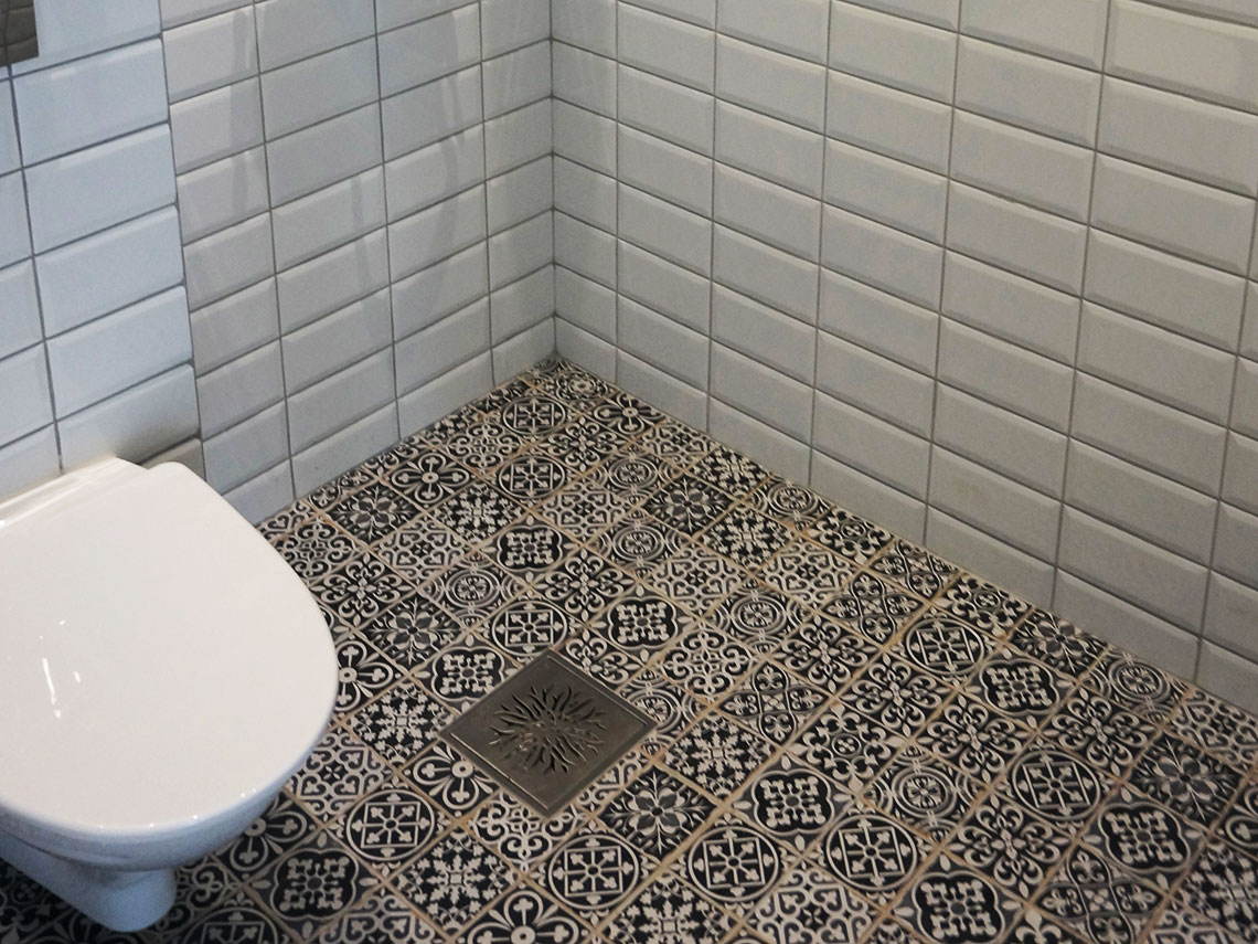 Vi har utfört en badrumsrenovering av ett badrum i en charmig lägenhet på Kungsholmen i Stockholm. Arbetet som behövdes göras i badrummet var omfattande. Vilket vi självklart gillar. Vi hantverkare på 08 Construct har certifiering inom alla delar av bygge – däribland VVS som är mycket behövligt om renoveringen berör bland annat vattenförsörjning och avlopp- Som i det här fallet. Våra plattsättare fick lägga ett vackert klinker i svart och vitt i ett diagonalt schackmönster med avlopp och avrinning under badkaret. Badkaret och armaturen installerades också nytt precis som handfatet.